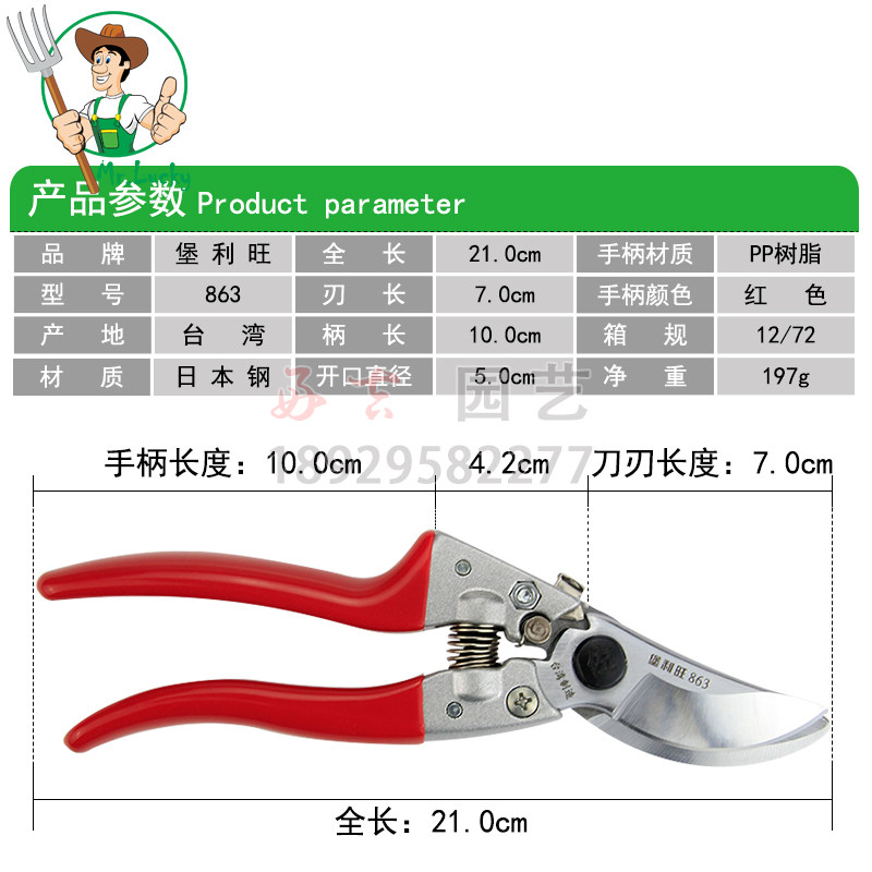 Taiwan Boliwang pruning shears 863 fixed clip fruit tree shearing aluminum handle labor-saving branch shearing automatic switch
