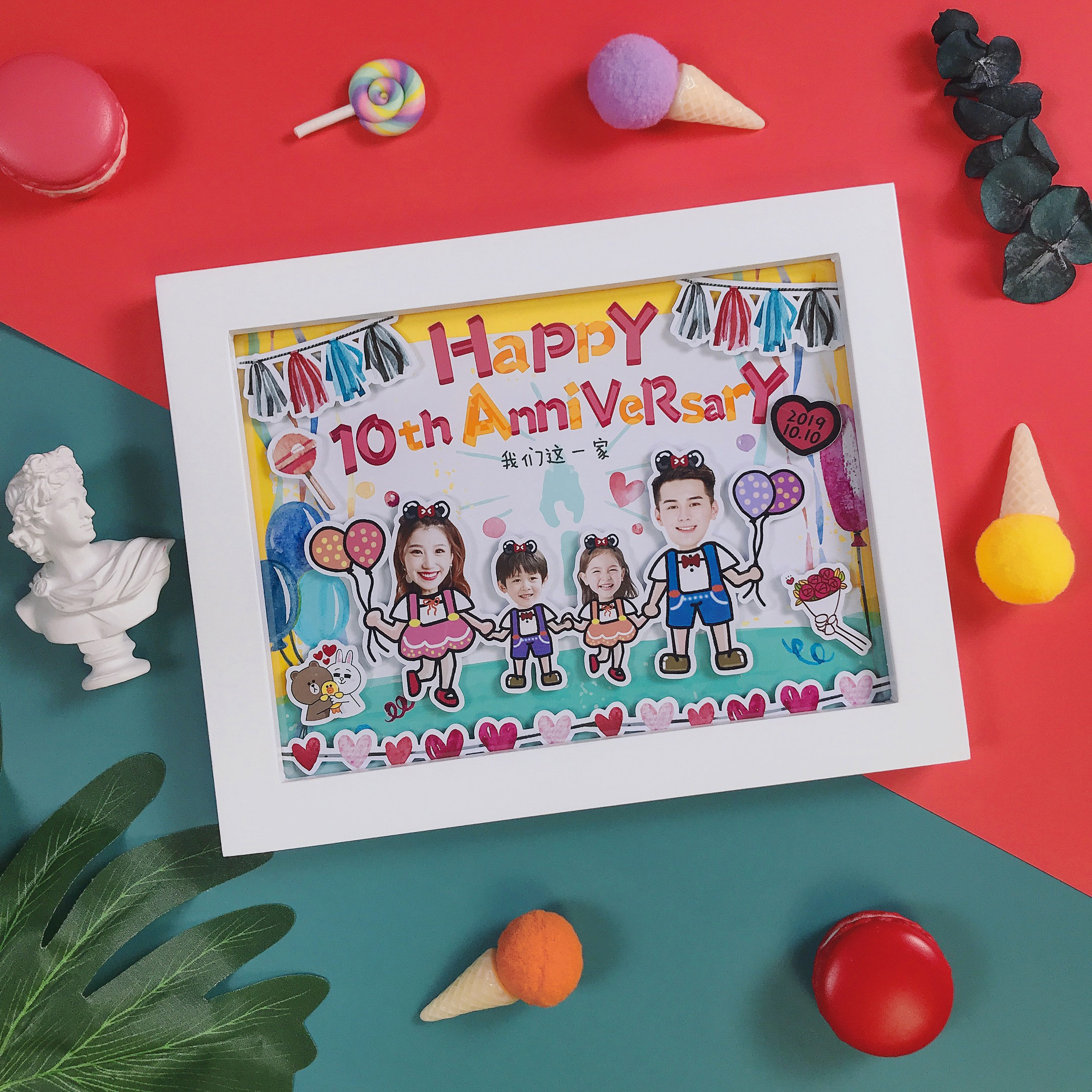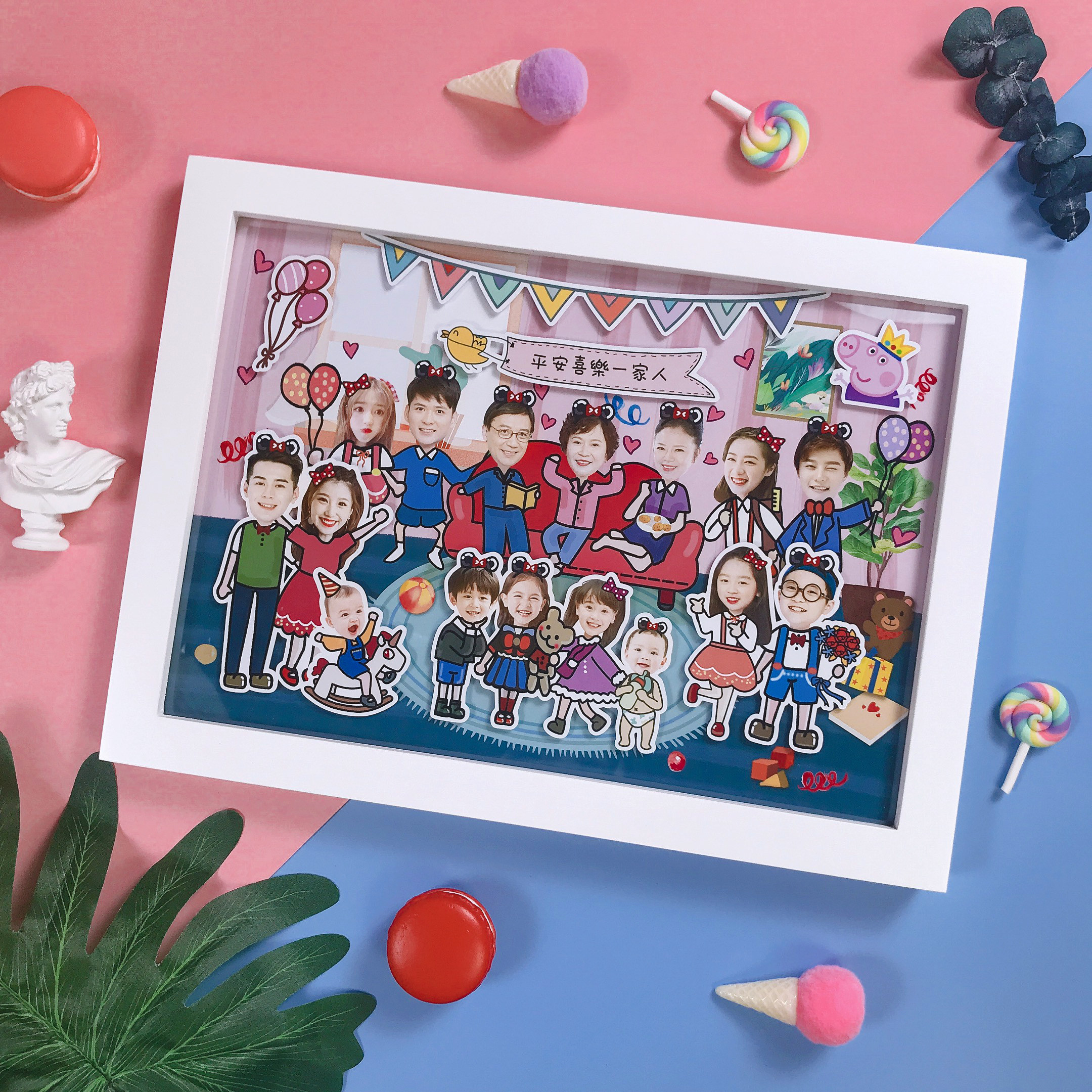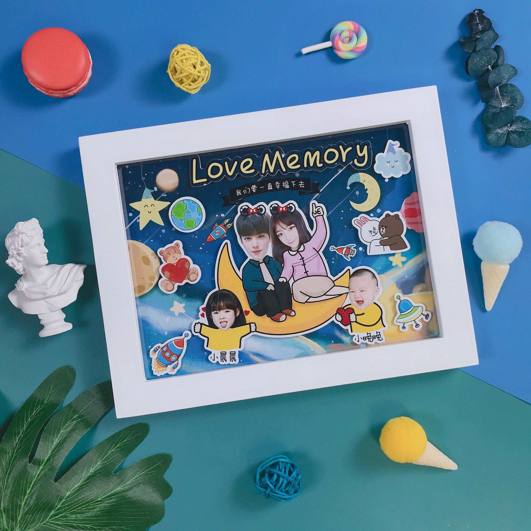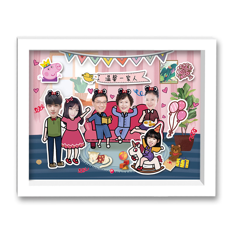 Family portrait handmade diy photo custom three-dimensional solid wood pendulum hanging wall Home creative gift photo frame cartoon