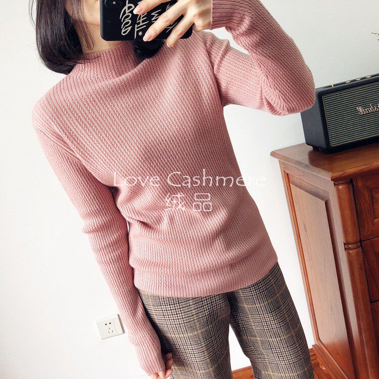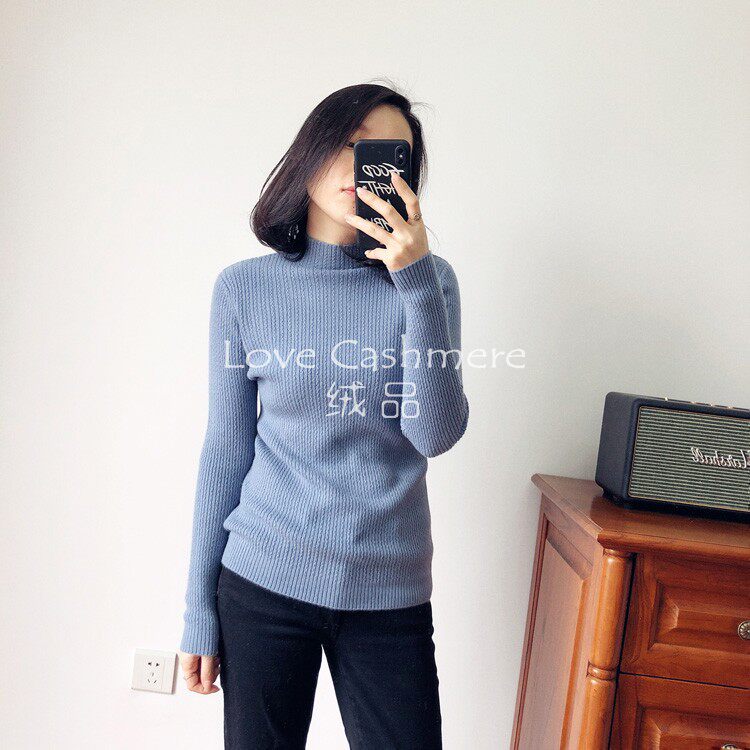 Love velvet Morandi color small high collar long-sleeved knitted sweater Consinee 100% pure cashmere sweater women's bottoming