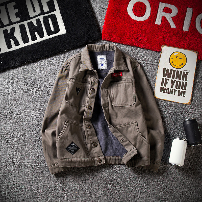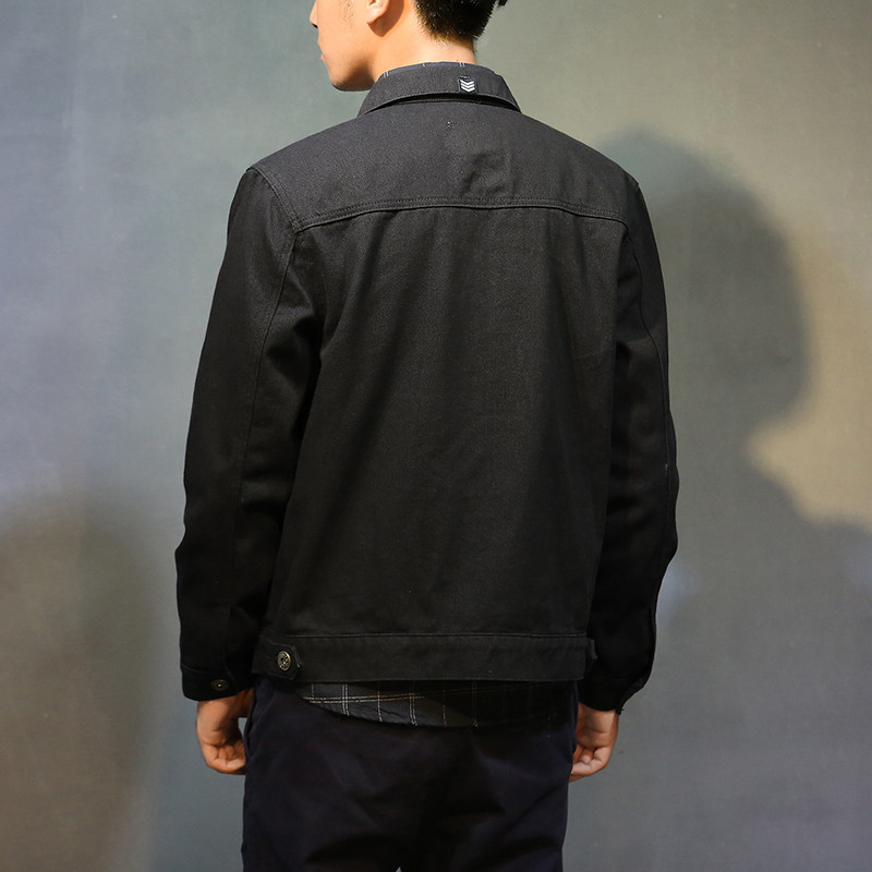 Tide Card Spring Autumn Season Men's Slim Fit Cowboy Jacket Big Code Jacket Tooling Denim Jacket Korean Version Loose Black-Taobao