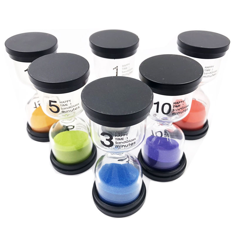 6 Colours Black Cover Hourglass Suit Creativity 1 3 5 10 15 30 min Timer Glass Hourglass Craft Gift