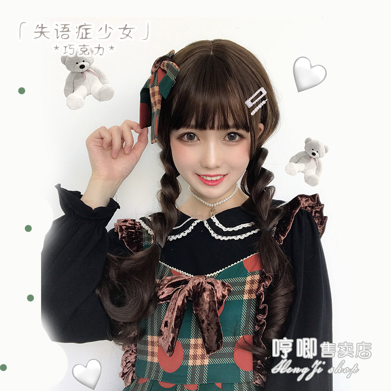 Humming home Lolita Harajuku soft girl "Insomnia Girl" chocolate-colored double ponytail female Lolita wig