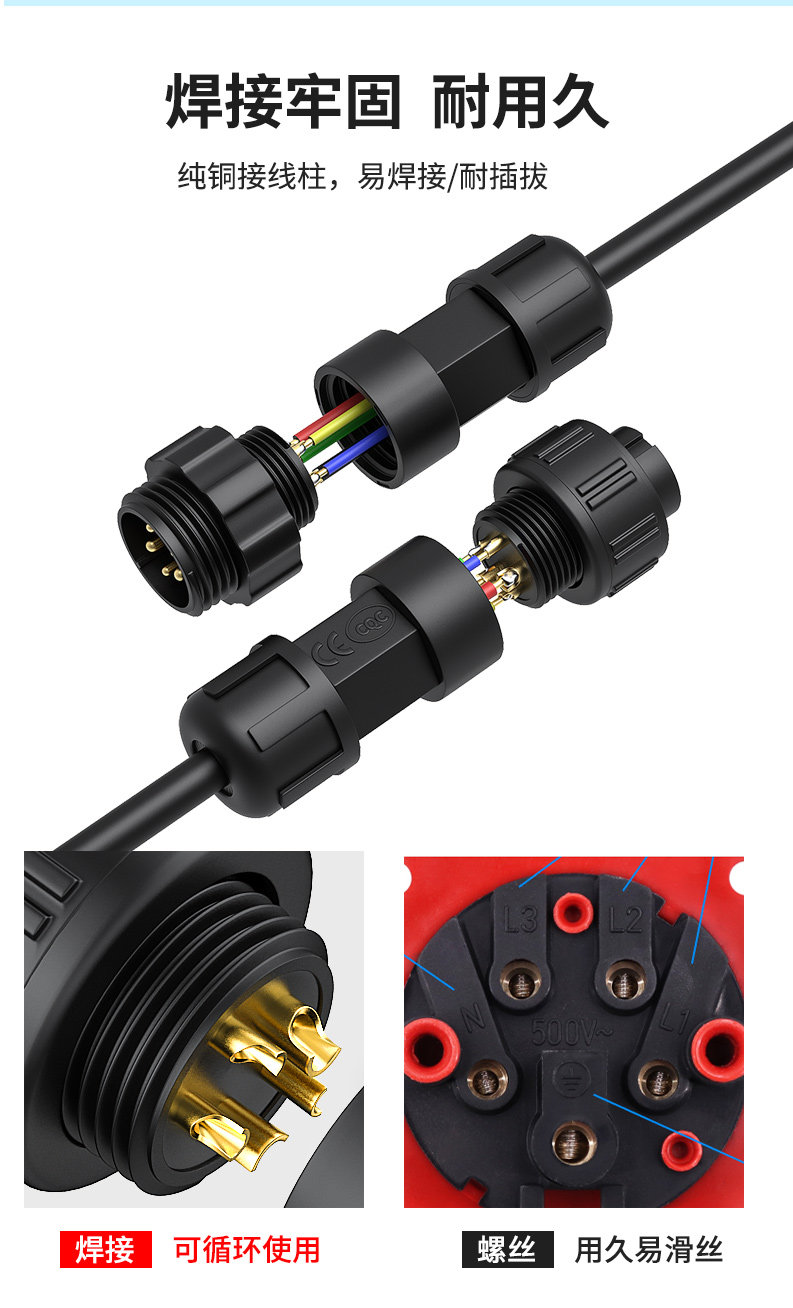 2-core waterproof docking male head (1 set) 3-core waterproof docking male head (1 cover) 4-core waterproof docking male head (1 cover) 5-core waterproof docking male head (1 cover)