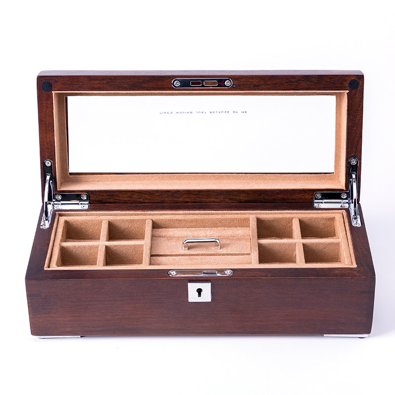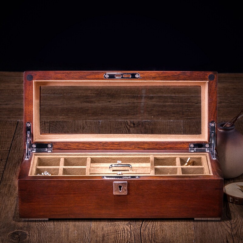 Elm pure solid wood double layer first decorated box with lock skylight solid wood display case containing box collection box can put safe