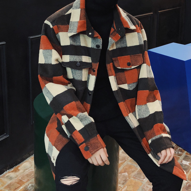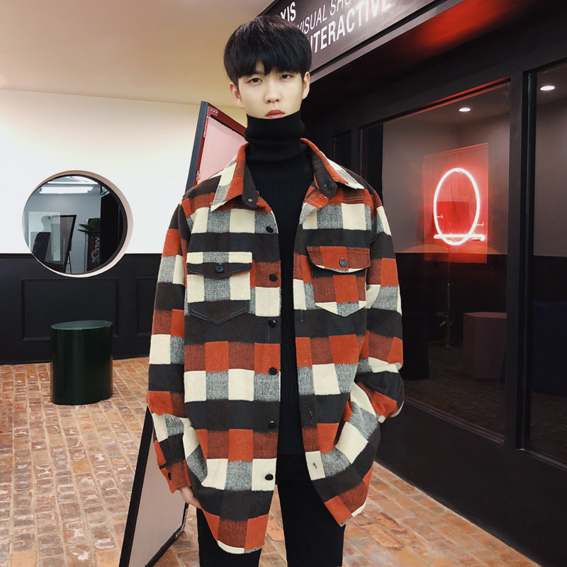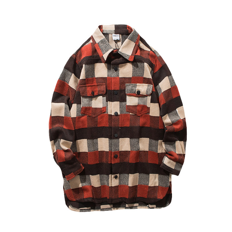 MRCYC new Korean version retro thick warm jacket loose long-sleeved shirt men's plaid shirt trendy
