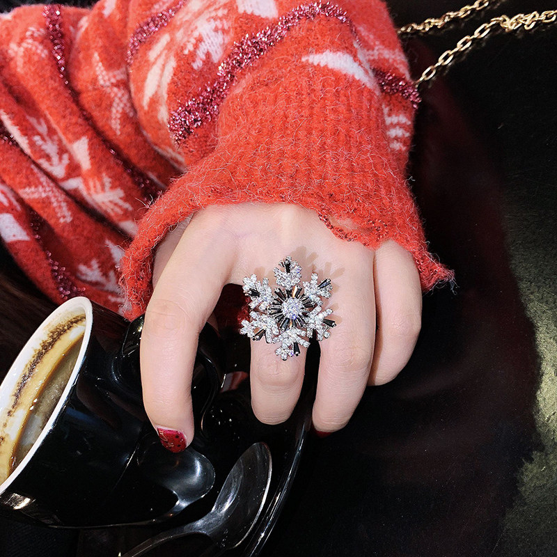 Snowflake ring rotating female turning net red fashion individuality light extravagant and small crowddesign senses sophisticated exaggeration ring