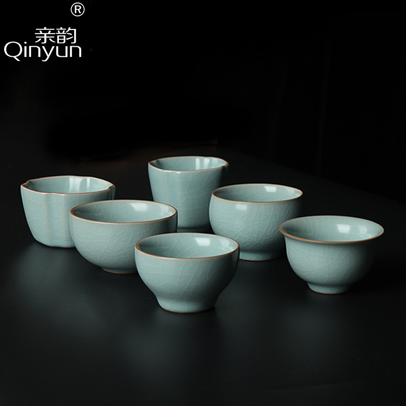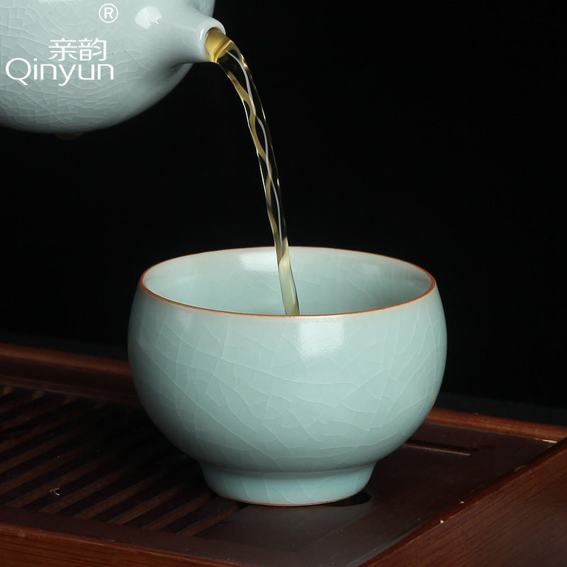 Prosody Tea Cup Ceramic Pint Cup Ru Kiln Master Cup Pure Handmade Personal Single Cup Tea Set Cup Open Sheet Can Be Raised