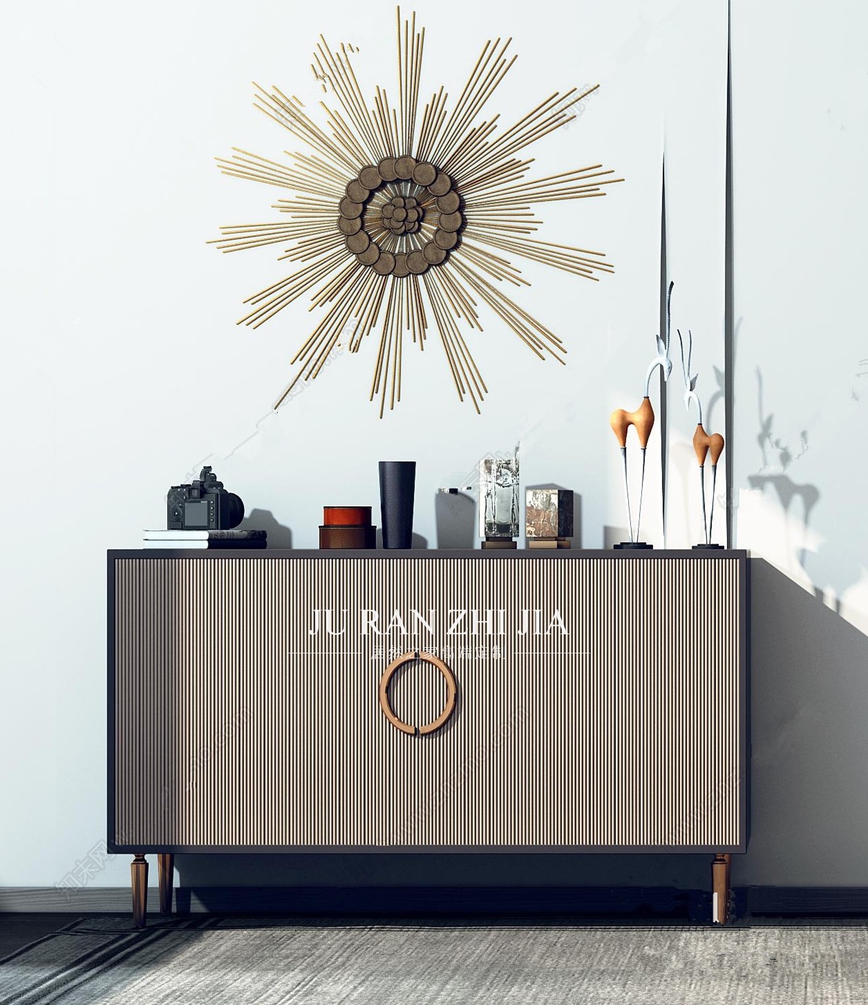Light luxury American solid wood champagne gold porch cabinet simple and modern depicting golden door foyer cabinet shoe cabinet Italian dining room dining cabinet