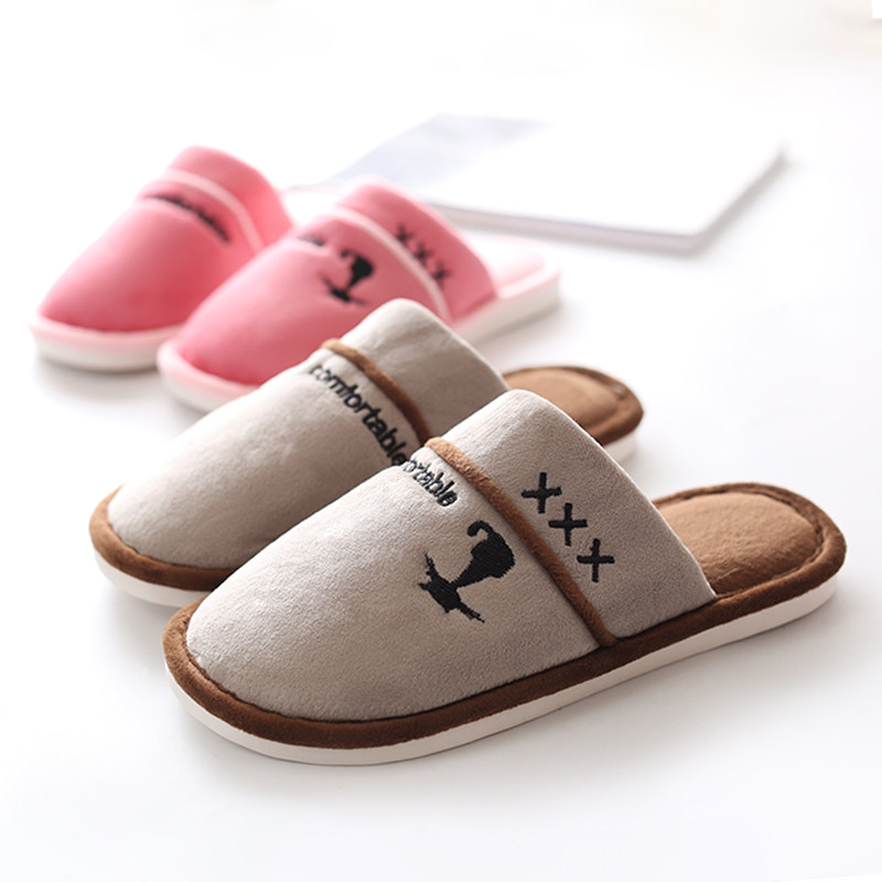 Men's cotton slippers women's winter home warm cute shoes soft soles take off shoes couples slippers a man and a woman