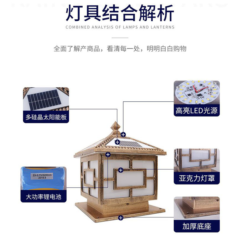 Dipre solar column head light Outdoor wall yard gate column light Waterproof outdoor garden villa garden light