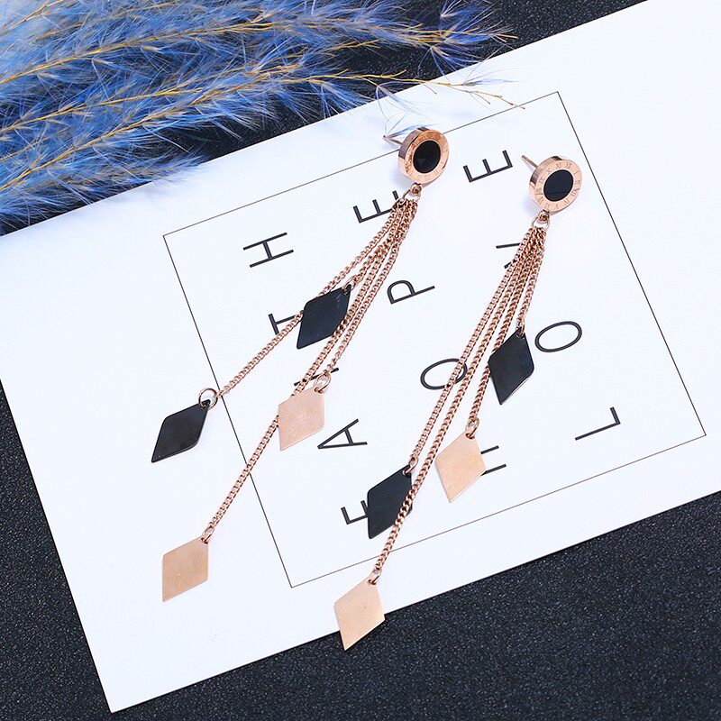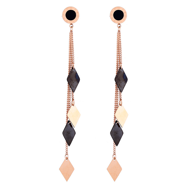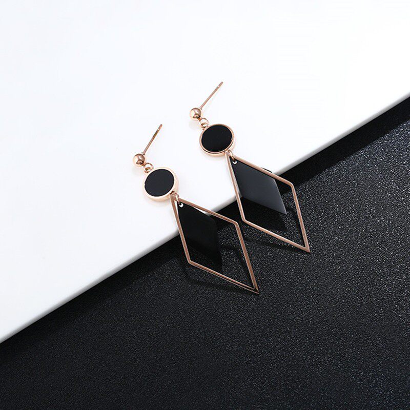 Light Extravagant High Level Sensual Earrings Korea Temperament Brief Titanium Steel Rhomboid Flow Sueared Long Version of the Wearing Face Slim