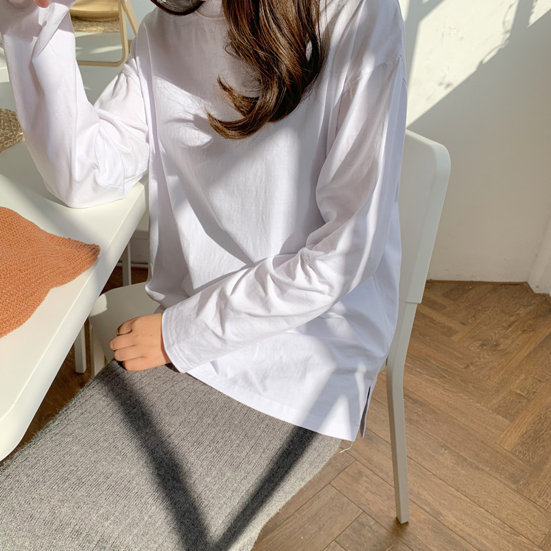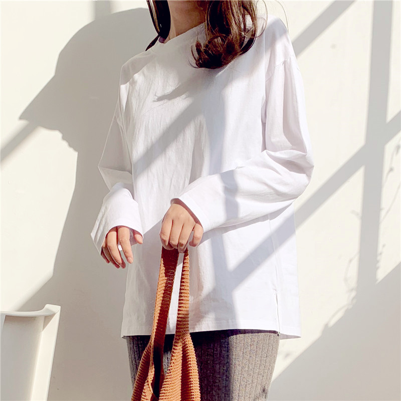 Spring clothing autumn and winter white long T women's cotton long-sleeved T-shirt women's bottoming shirt sweater top loose mid-length version