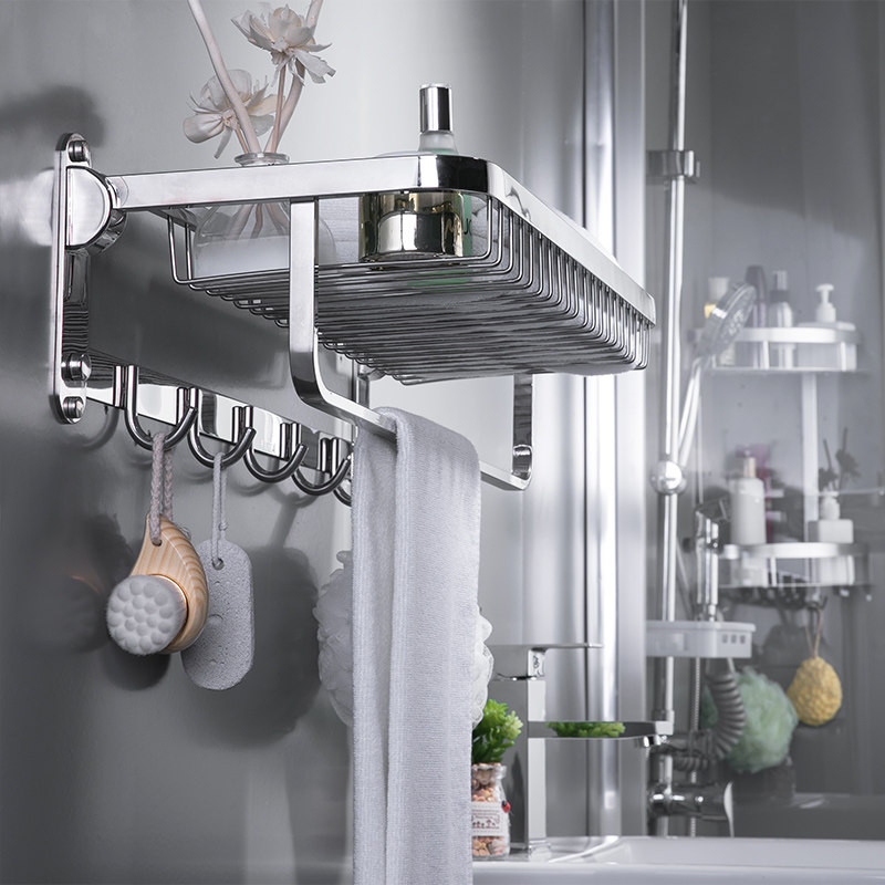 Towel rack free punch toilet shelf wall hanging bathroom toilet clothes storage stainless steel rack bath towel rack