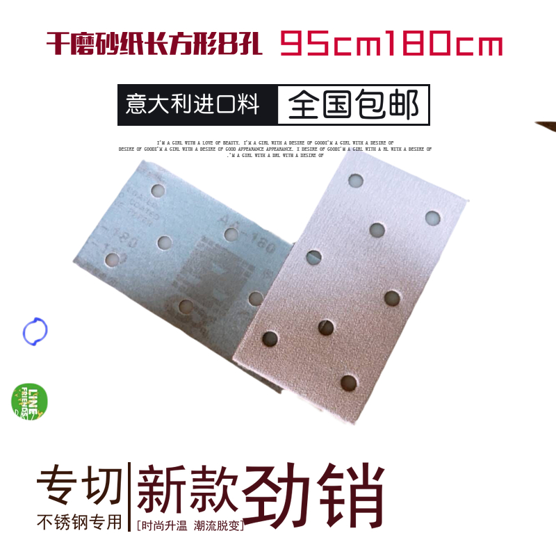 Dry abrasive paper rectangular 8-hole 90cm175cm self-adhesive sand leather batch soil flocking sand sheet car putty