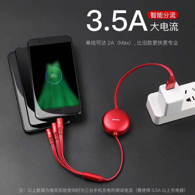 Triple-head charger one drag triple phone data line Three-in-one quick charge wire applicable iphone Apple Android type-c Huawei type telescopic tapy-c universal tpc-c