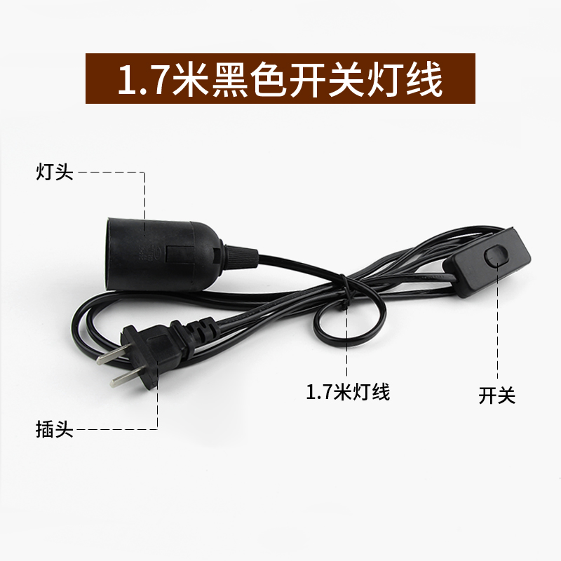 E27 screw mouth Home light bulb special power cord lamp holder with two-head insert with switch line with wire lamp holder 1 7 m