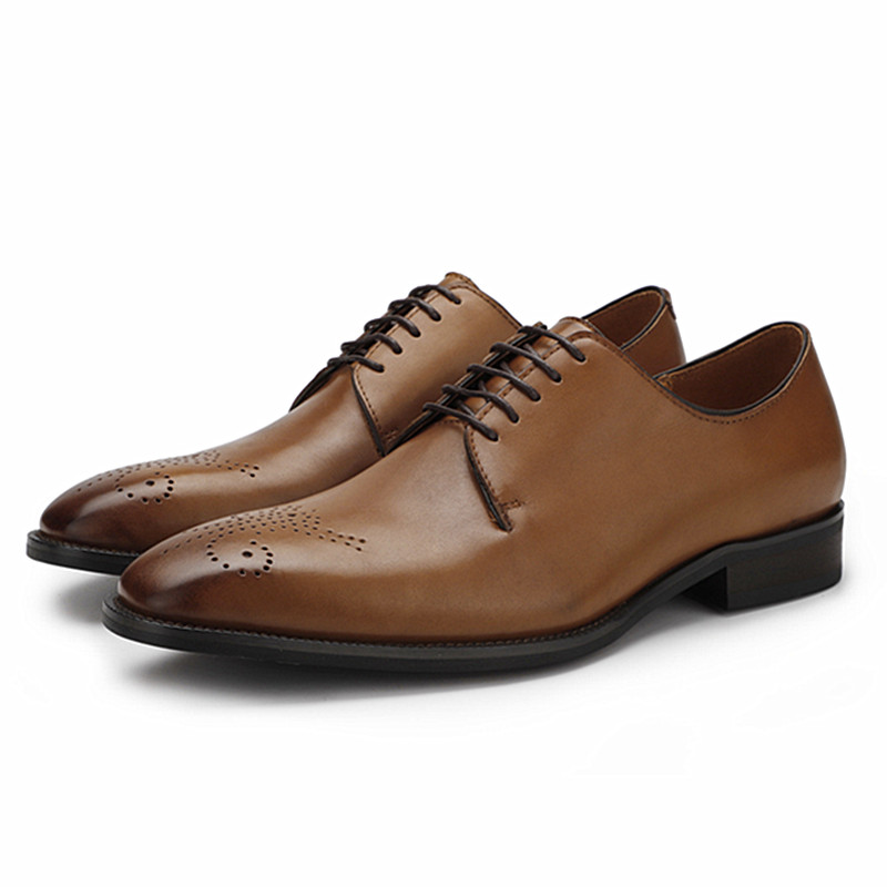 Block shoes men EnglishBaroque carved Italian hand-wiped business dress real leather shoes