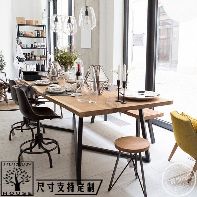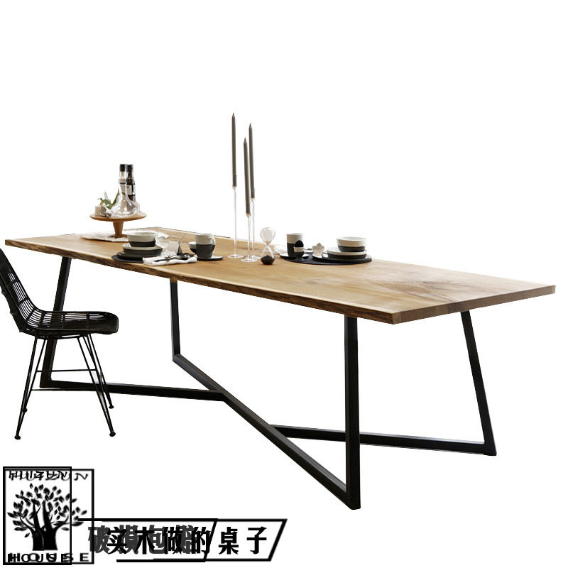 Loft desktop computer table conference table solid wood dining table American desk simple modern large board log calligraphy table