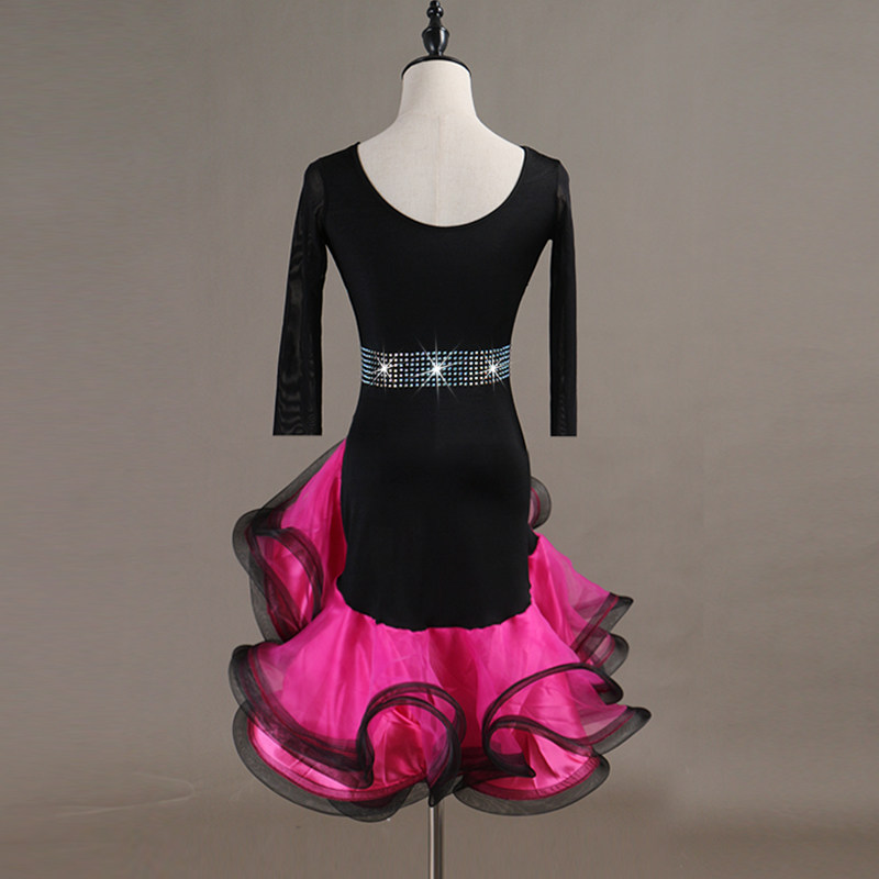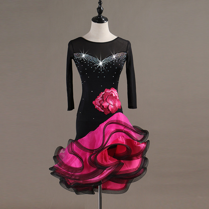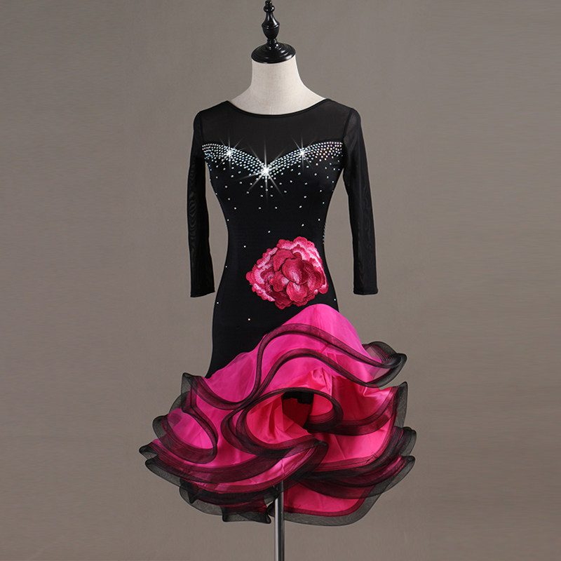 Round neckline inlaid with Latin dance performance Conqueror Latin dance Dancing big swing with three-step Gittba dance dress