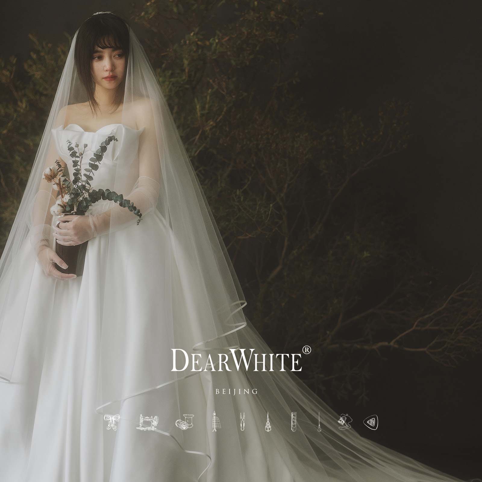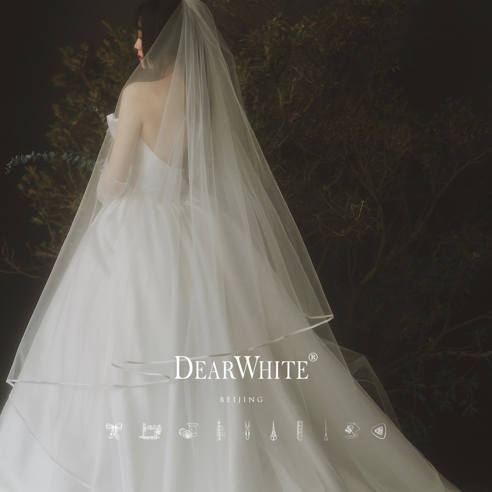 Dear white "Yunling" vintage forest wedding Zhang Xinyu Satin bread-edged female bride headdress veil