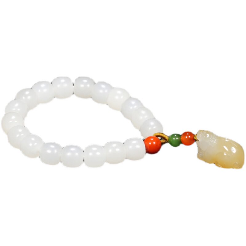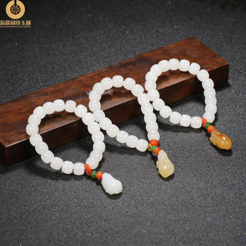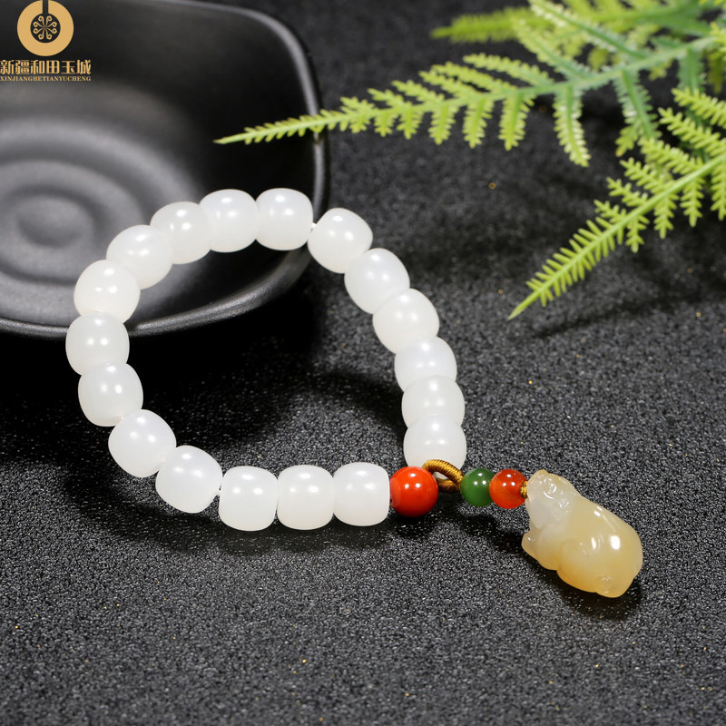 Fidelity Xinjiang and Ms. Tian jade Goat Fat Jade Handmade Natural Jade old pearl white jade leopard Handstring