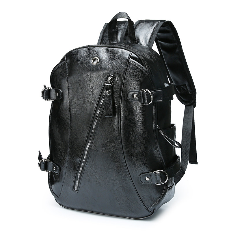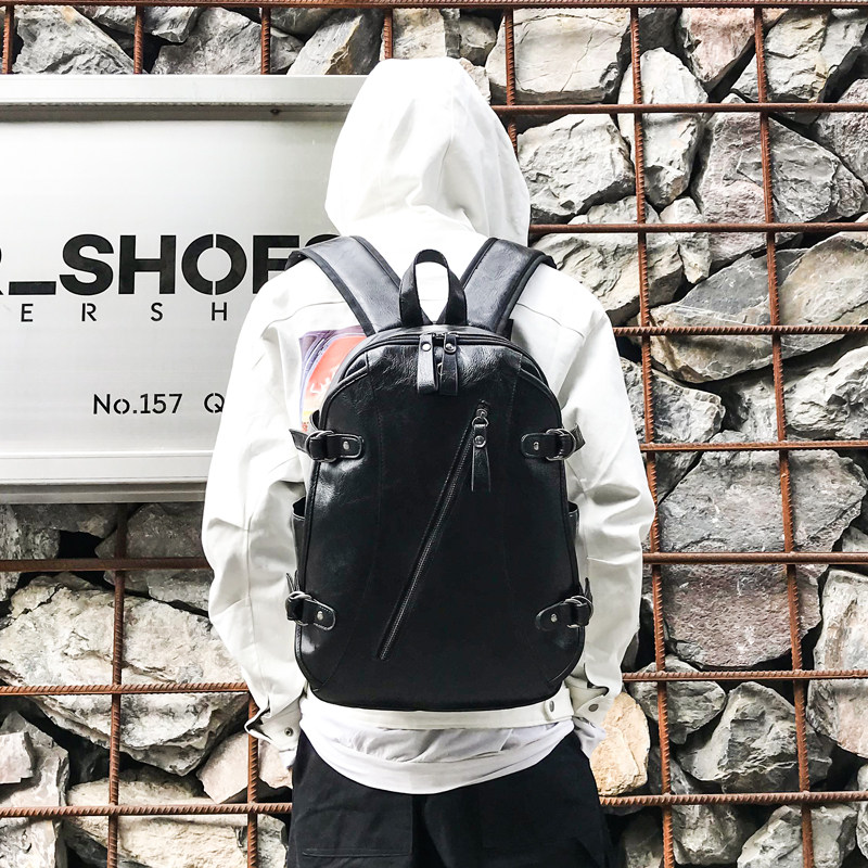 Leather new trendy men's street outdoor backpack student school bag computer bag Korean version leisure travel backpack 2022