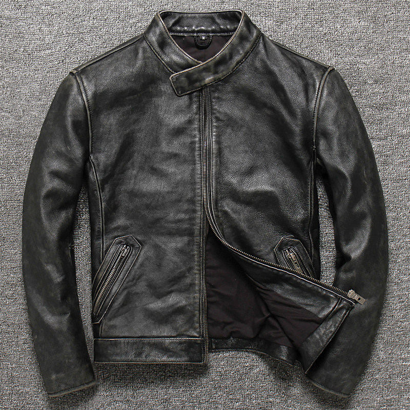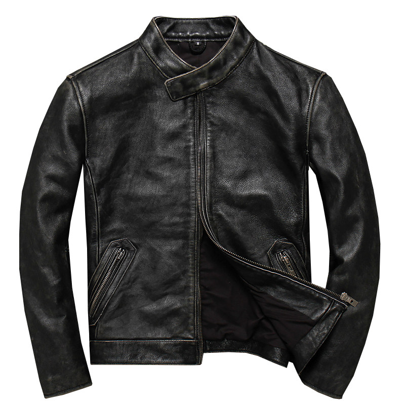 Head-layer cow leather leather clothing male collar genuine leather leather clothing short-fit new locomotive pick up missing leather jacket casual jacket