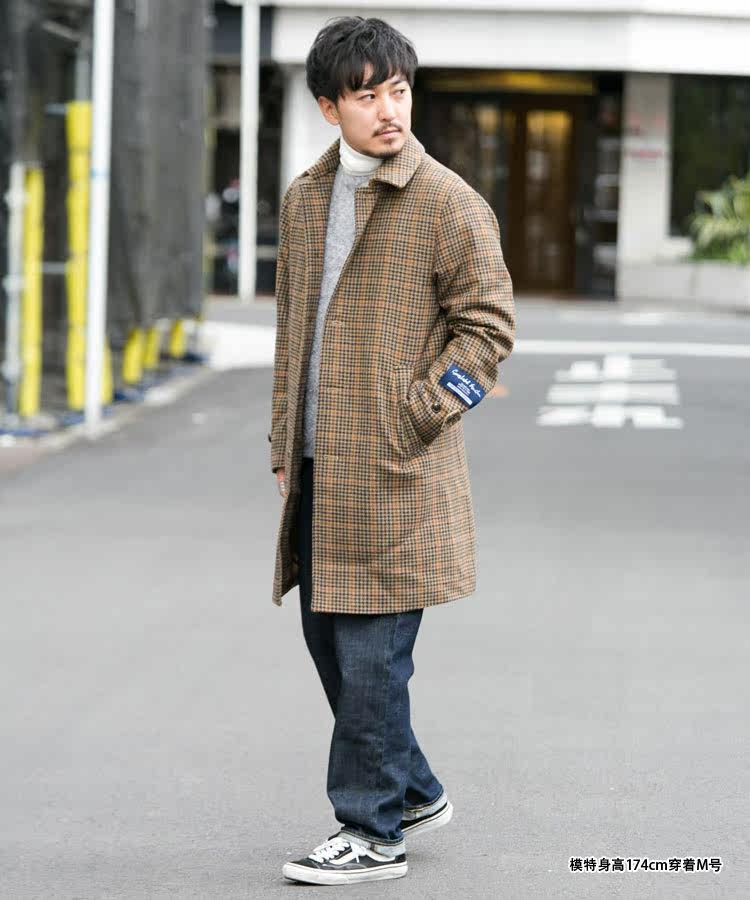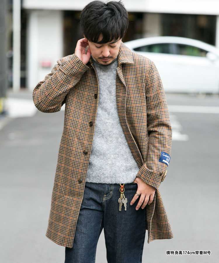 Japanese fabric British Houndstooth jacquard wool tweed medium and long version of single-breasted lapel coat