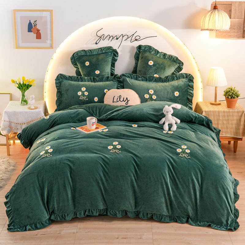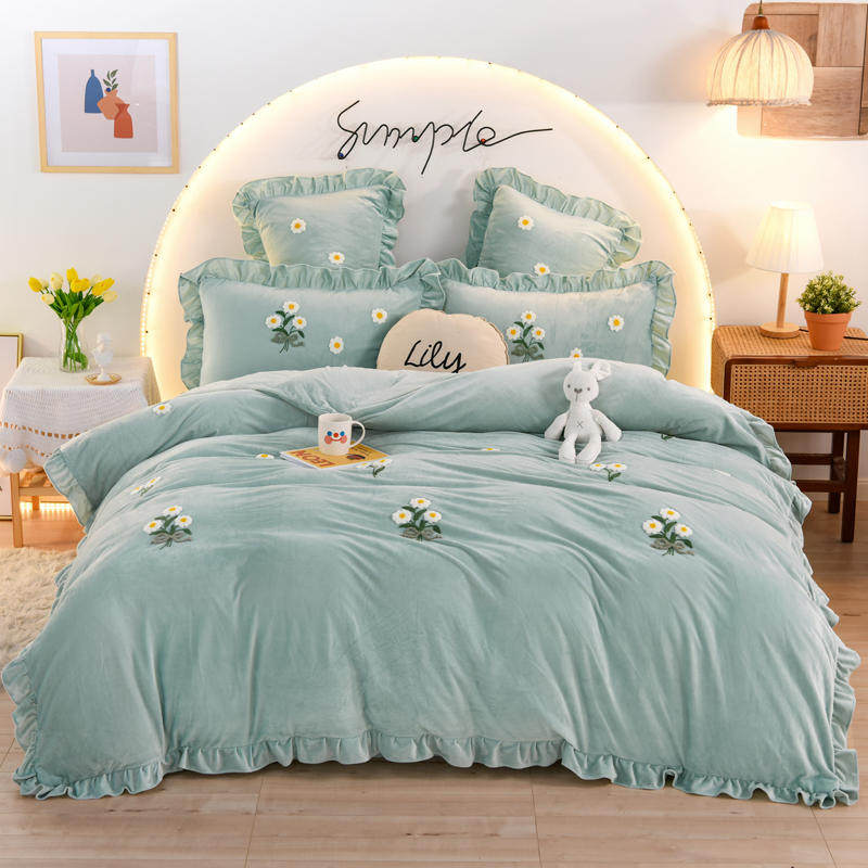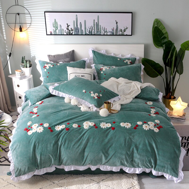 In small daisies crystalline coral suede four pieces of towel embroidery precious flannel double-sided coral velvet heating condom