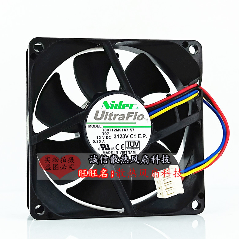 NIDEC T80T12MS1A7-57 T07 8CM 8025 12V 0 30A 4-wire temperature control cooling fan
