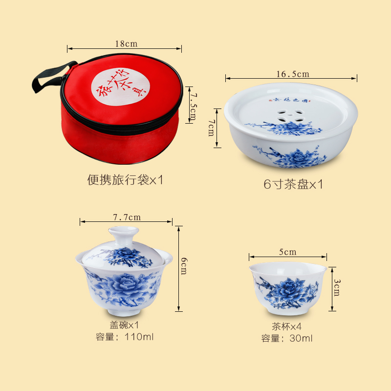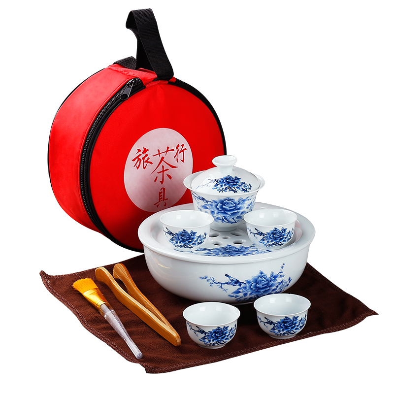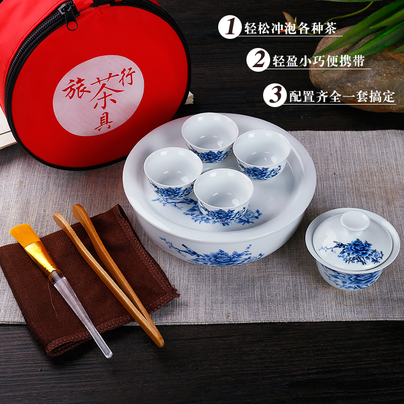 Travel Kung Fu Ceramic Tea Set Portable Bag Simple Outdoor Travel Car Storage Bag Tea Cup Tea Tray Simple