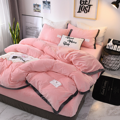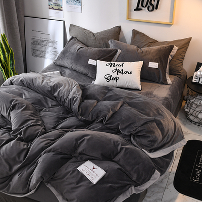 Red double-sided suede crystal velvet four pieces of winter thickening coral velvet bed on beds of bed