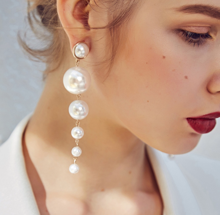 Bride earrings, Pearl long version, hypoallergenic earrings, female Day, Korean Joker, temperament earrings, fashion accessories