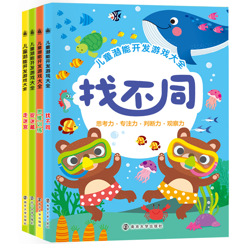 4 children's concentration training books 3-6 years old children's puzzle books Maze walking thinking training games find the difference