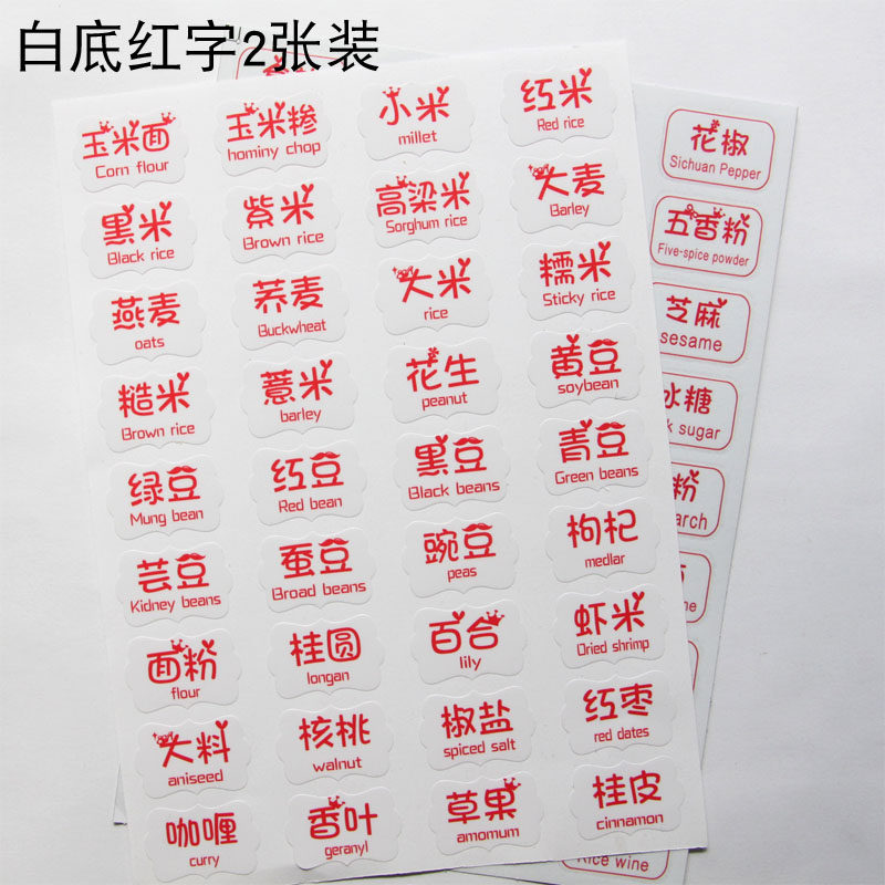 Seasoning stickers--black bottom set seasoning stickers-transparent bottom set seasoning stickers-white bottom black letter set seasoning stickers-white bottom red letter bottom set
