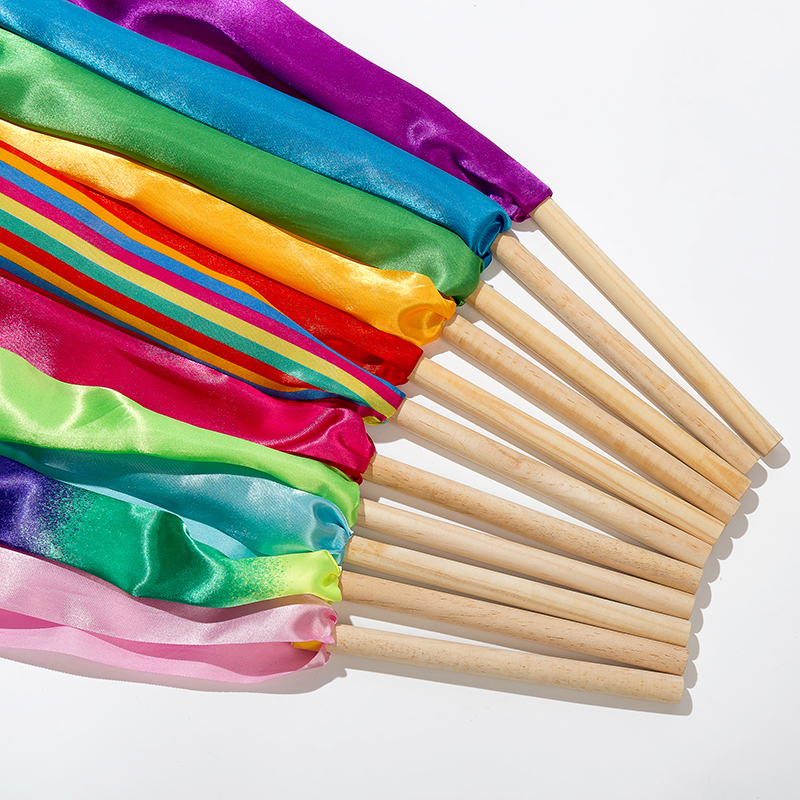 Dance Color Wooden Rod Gymnastics Activity Props Dance Ribbon Children Floating Seven-Coloured Silk Belt