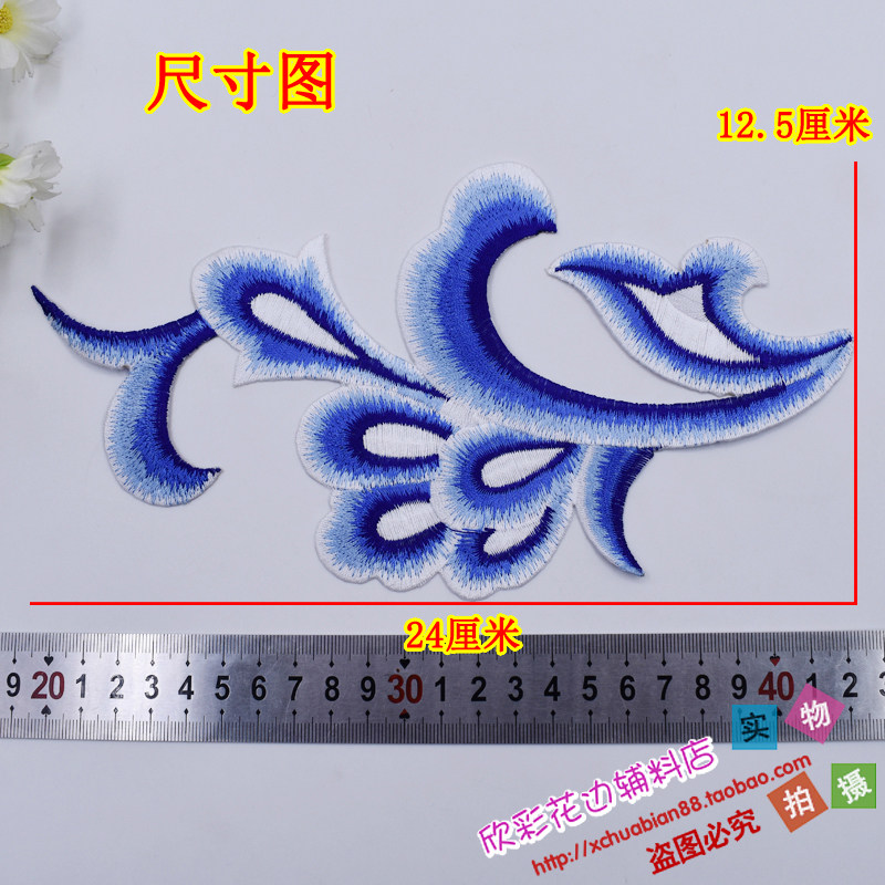 Fine performance accessories handmade diy material cloth stickers blue and white porcelain window grilles hot cheongsam applique 3976# hot flowers