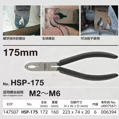 Japan Weiwei rusty screwed toothed screw pliers Imported multi-function extraction screw elastic pliers HSP-175