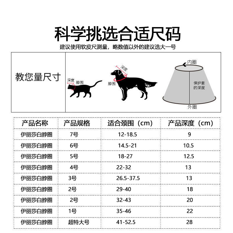 No.7 neck circumference 12-19cm6 neck circumference 14-21cm5 neck circumference 18-27cm4 neck circumference 22-32cm3 neck circumference 26-37cm2 neck circumference 2