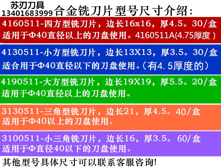 Original plant Zhuzhou Diamonds milling cutter sheet 4160511YT14YT15YW2YG6YG8 4 * 16 square