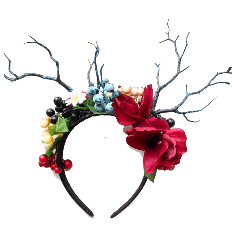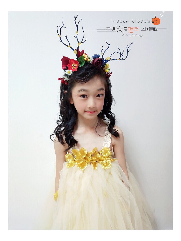 Mori women's cute elf Super fairy antler hair hoop female branch children's headgear catwalk tour photo Christmas photo match