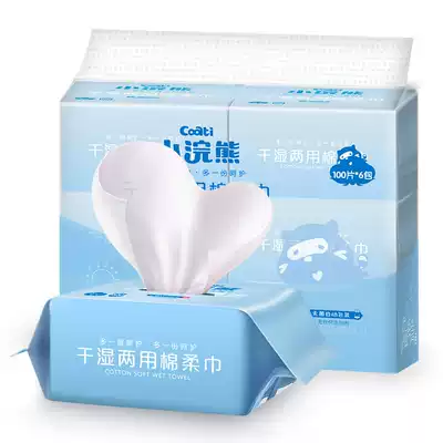 Newborn children's dry and wet towel dual-use cotton soft clean skin-friendly face towel 100 pumping 6 packs of small raccoon baby wet paper towel