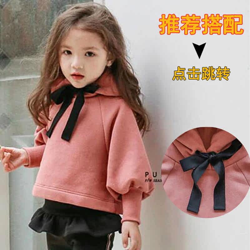 Girls thick T-shirt plus velvet thick autumn and winter 2022 new 3 children 5 years old Western style warm girl hooded casual top
