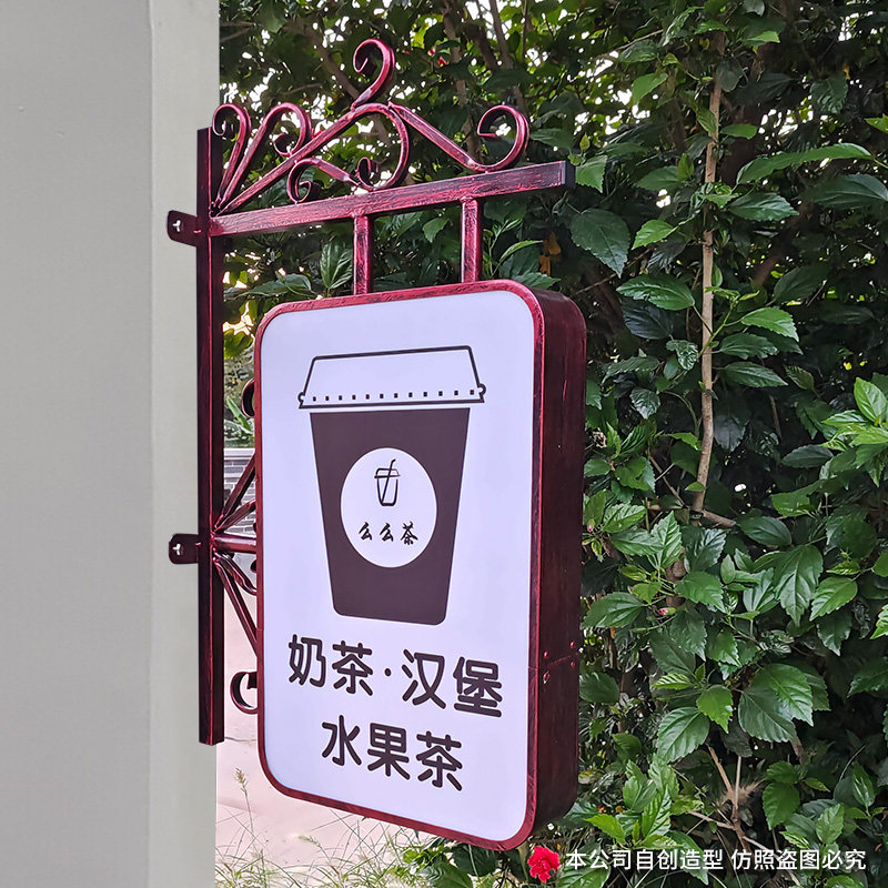 European iron LED lamp box aluminum alloy double-sided oval custom suspension wall type suction advertising emitted