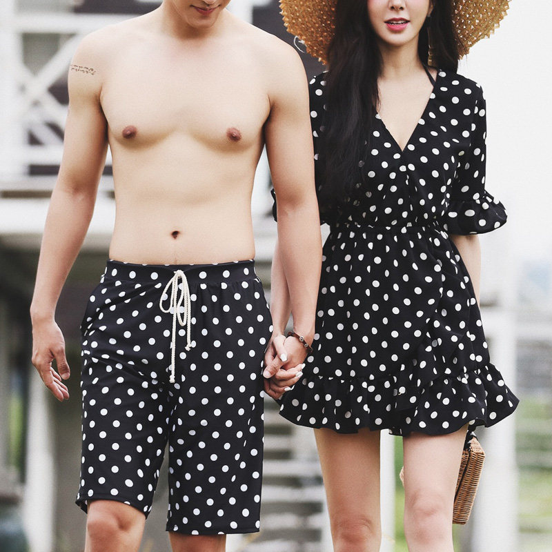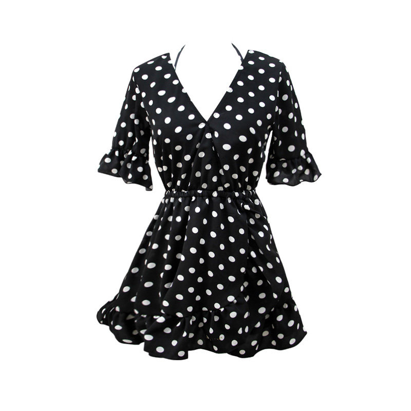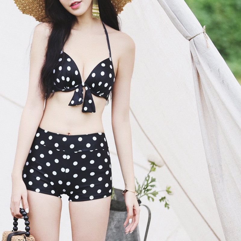 Swimsuit female sense gathered conservative cover belly thin polka dot bikini three-piece swimsuit seaside halter hot spring