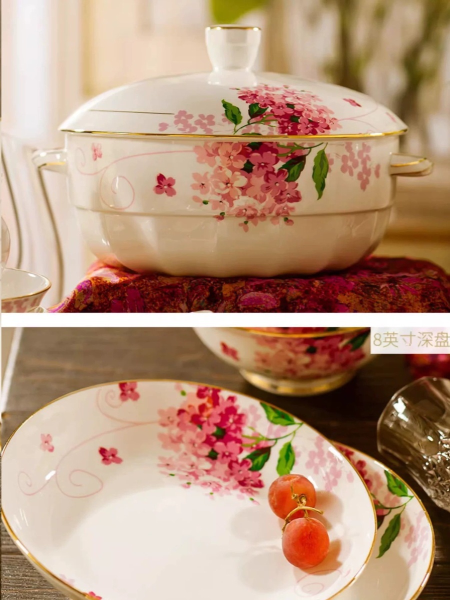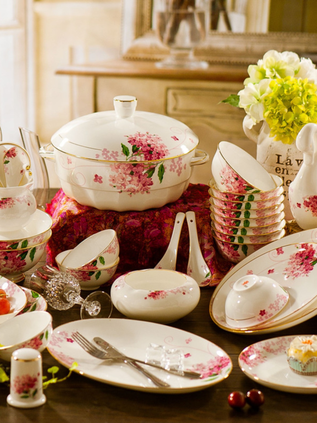 Tableware set Jingdezhen ceramic bone china bowls and plates bowls and chopsticks combination household bowl set handmade bowls and plates