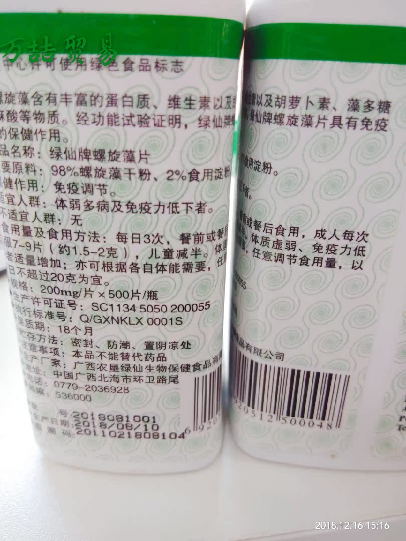 Probiotic Health Lvxian Spirulina Tablets Guangxi Beihai 20 Years New Day 10 Bottles Special Price Consultation Offer