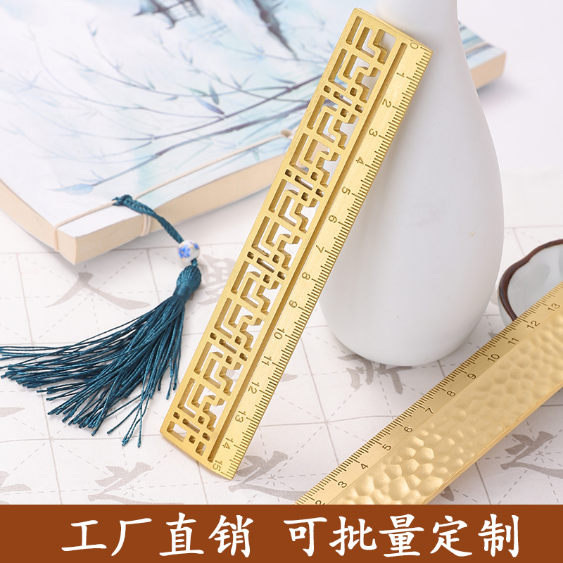 Brass Engraving Hollowed-out Bookmark China Wind Art Ruler Suit Student Ruler to customize a piece of play with a character