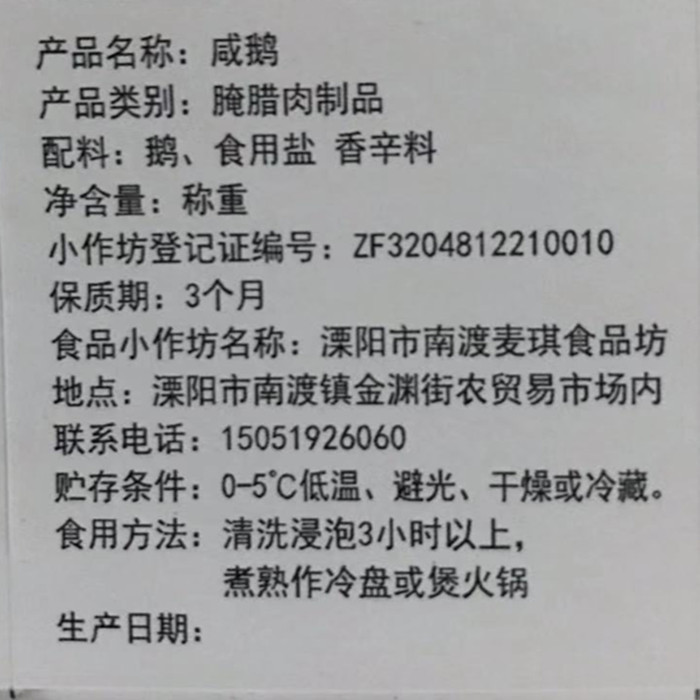 Zhou City Salty Goose 4 5 Jin Farmhouse Cured air-dried Goose Goose Maoshan Goose Liyang Tianmu Lake Special Maternity