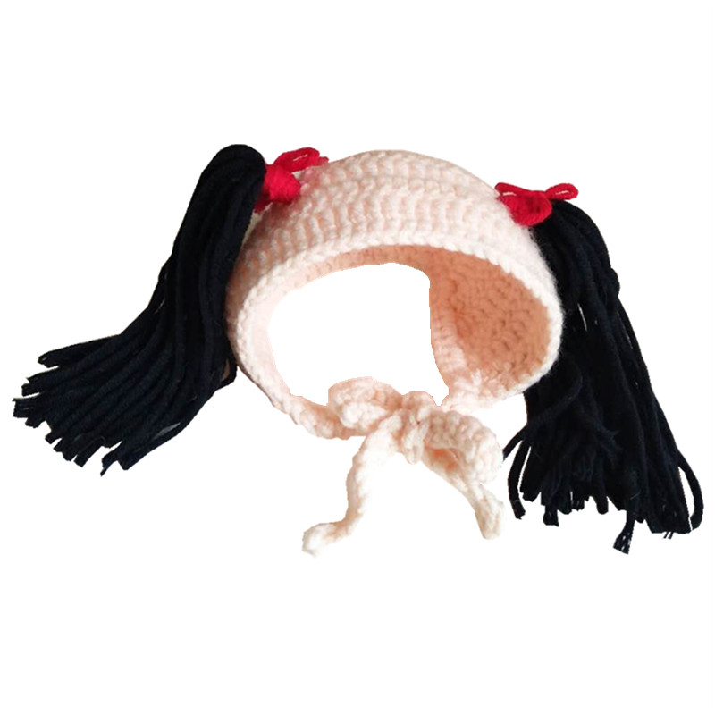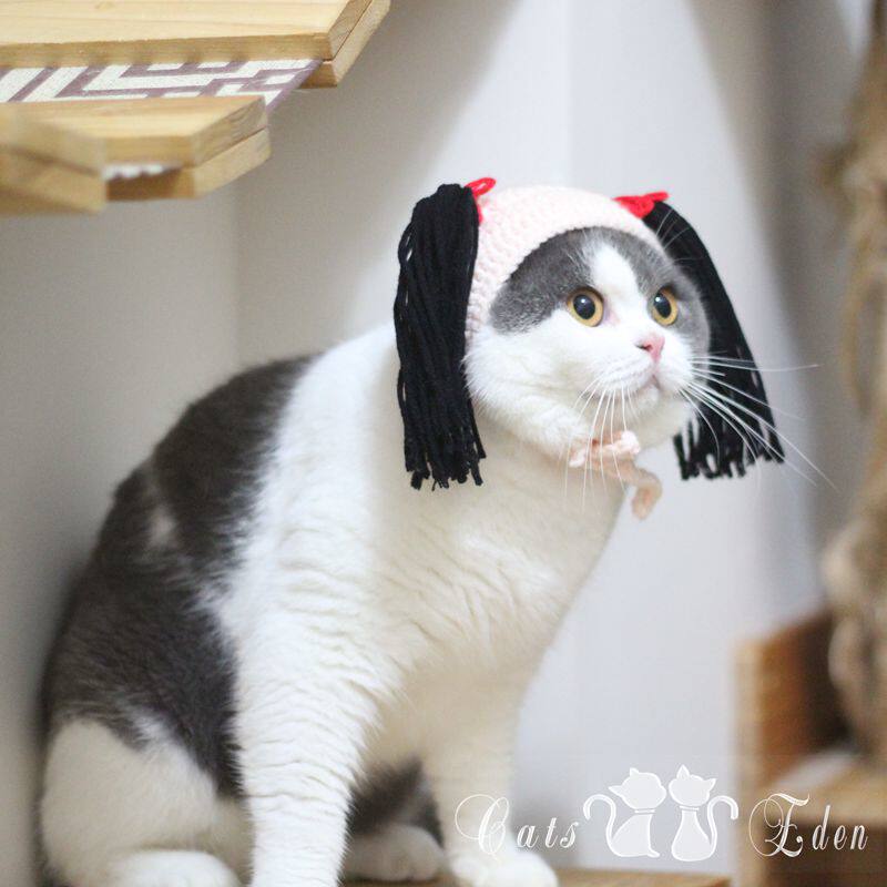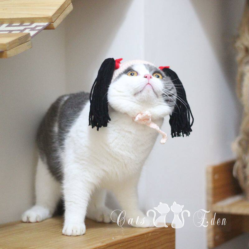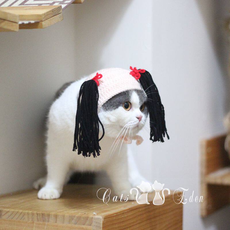 Pet cat shake sound Net red double horse tail braid hat cat funny funny and funny handmade knitted headgear
